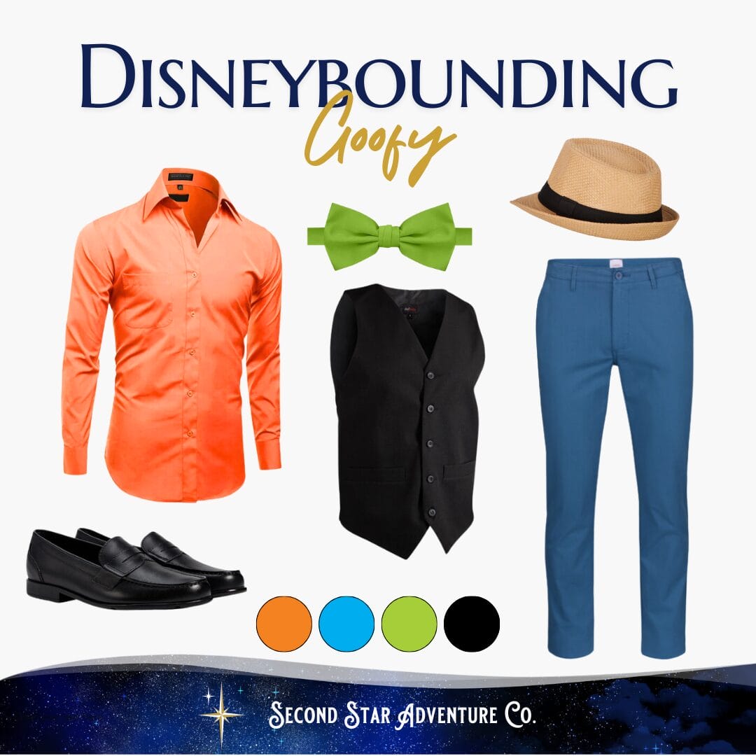 For Goofy, the hat's the thing -- figure out your topper and work down from there! You can also dress up or down as you like, from a buttondown and tie, to shorts and sneakers.